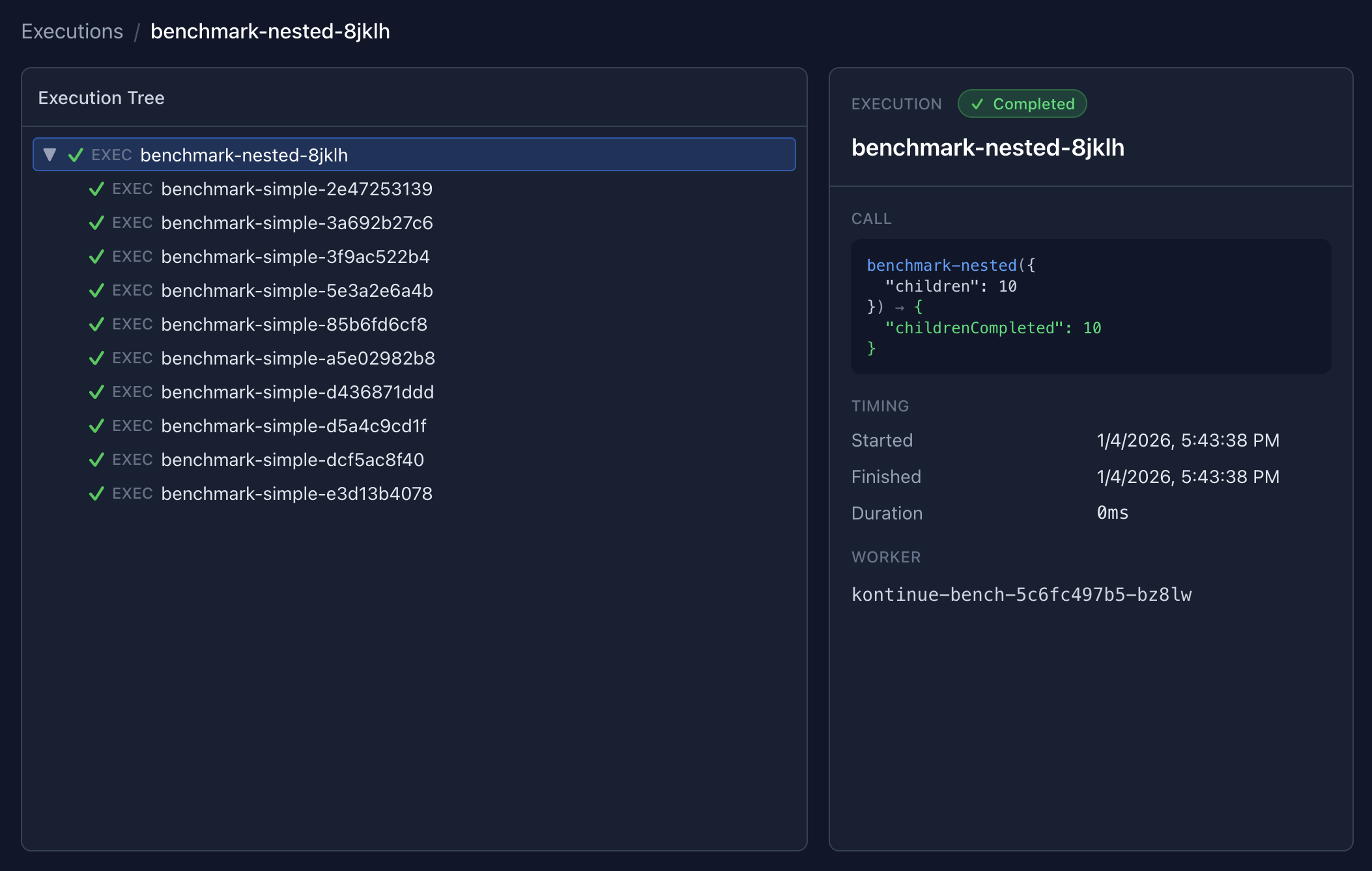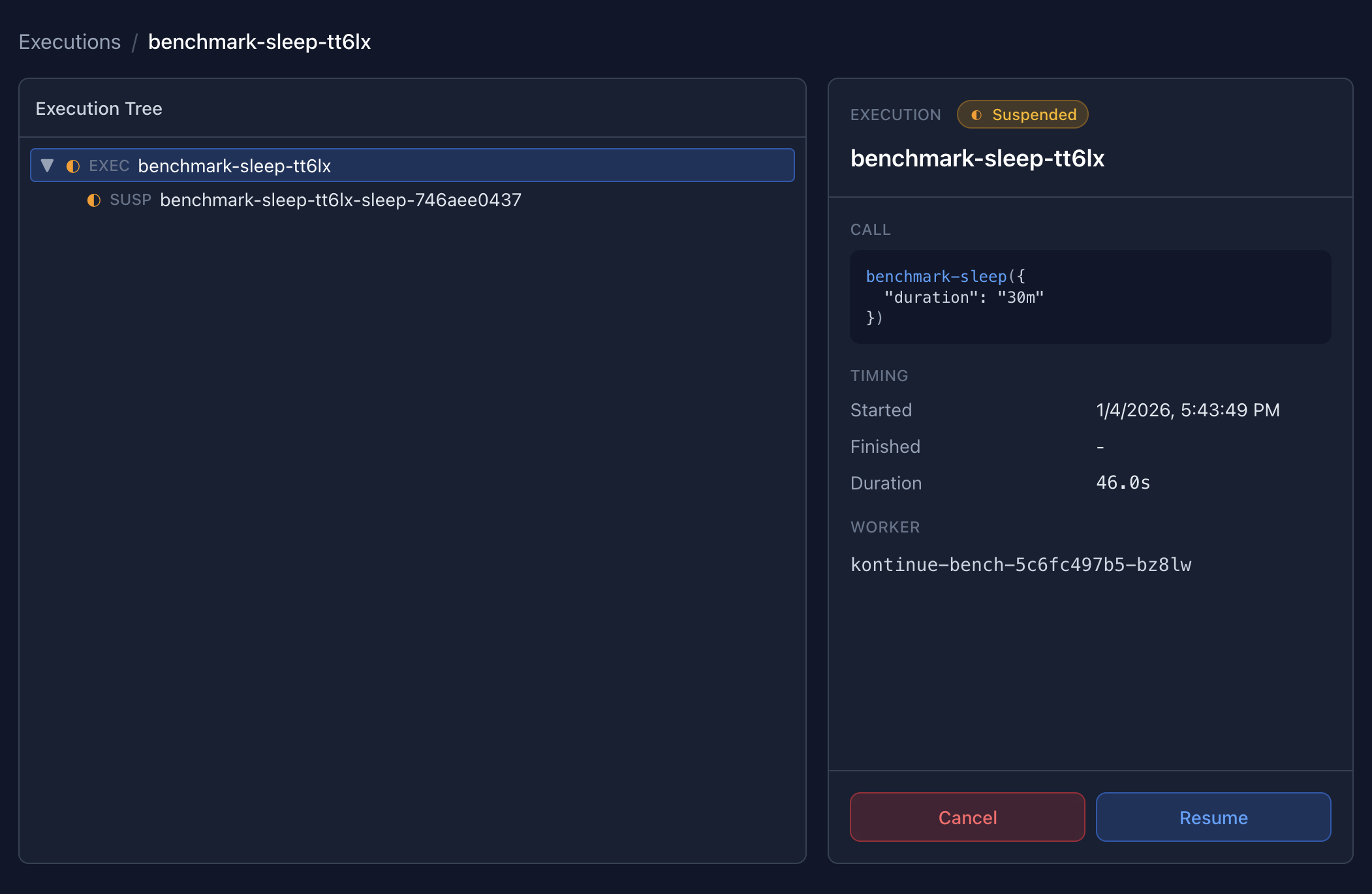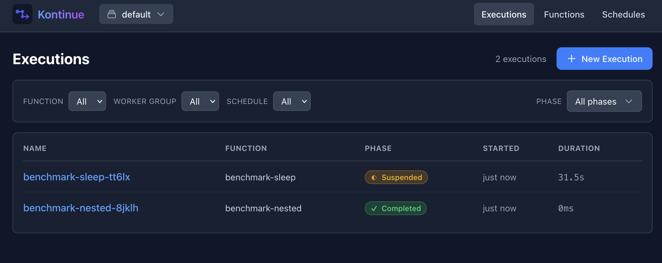 kontinue provides a web interface for querying and managing executions: